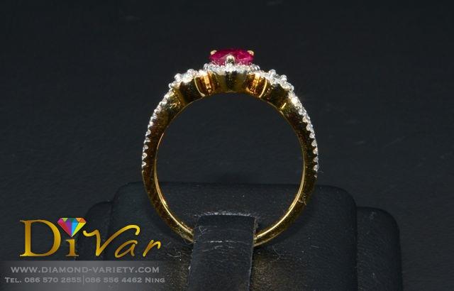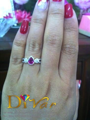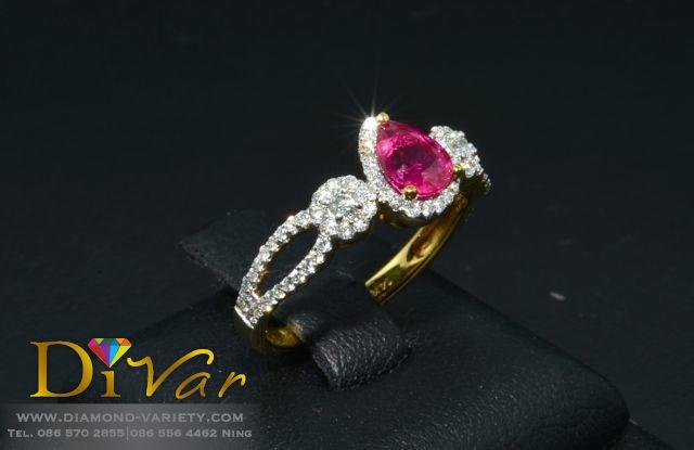 ประเภทสินค้า : แหวนเพชรทับทิมเจียรเหลี่ยมทรงหยดน้ำ เพชรแท้รวม 0.60กะรัต