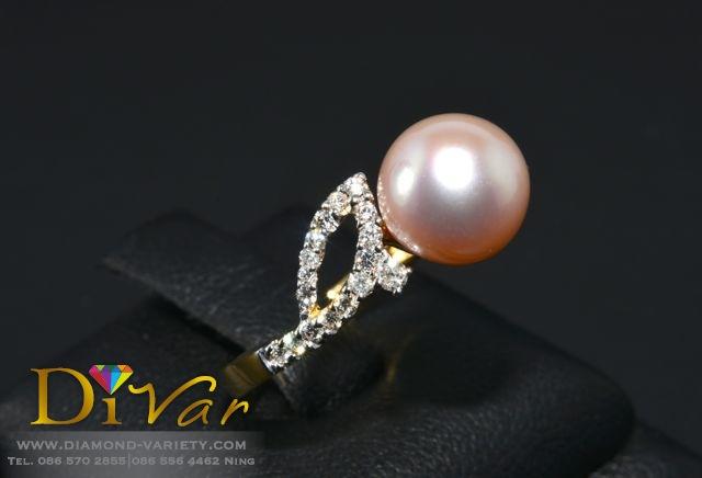 ประเภทสินค้า : แหวนเพชรไข่มุกน้ำจืดเกรดAAA สีม่วงอ่อนอมชมพูไซด์8.1mm. เพชรแท้น้ำหนักเพชรรวม 0.33 กะรัต